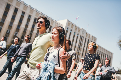 На стартовой площадке тебе выдают специальное радио-оборудование, похожее на крутые космические беспроводные наушники с фирменным логотипом. Оно будет включено до конца представления – это твой контакт с Голосом Города и порт в новое измерение.